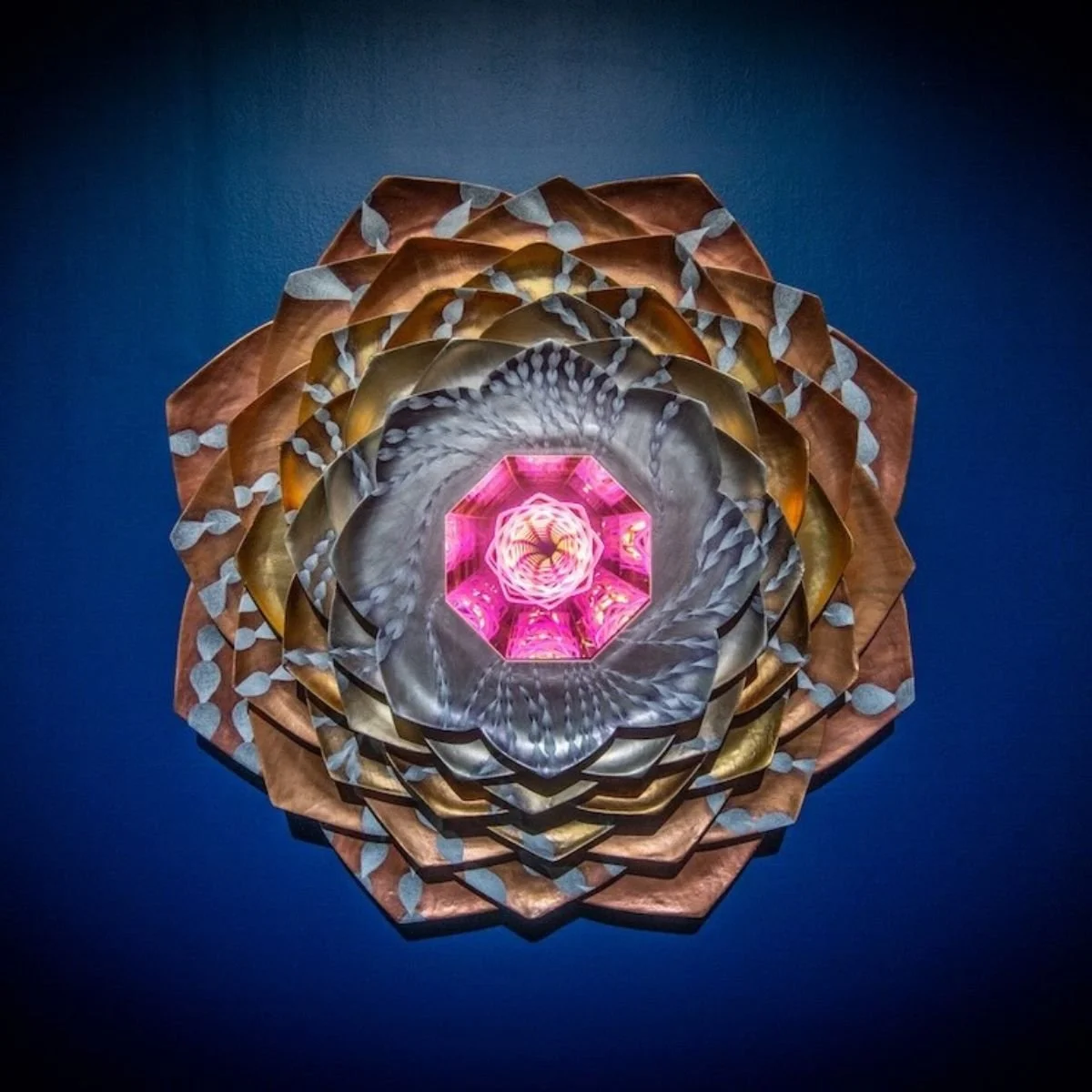 Mario Martinez’ sculptures blending sacred geometry with modern technology.