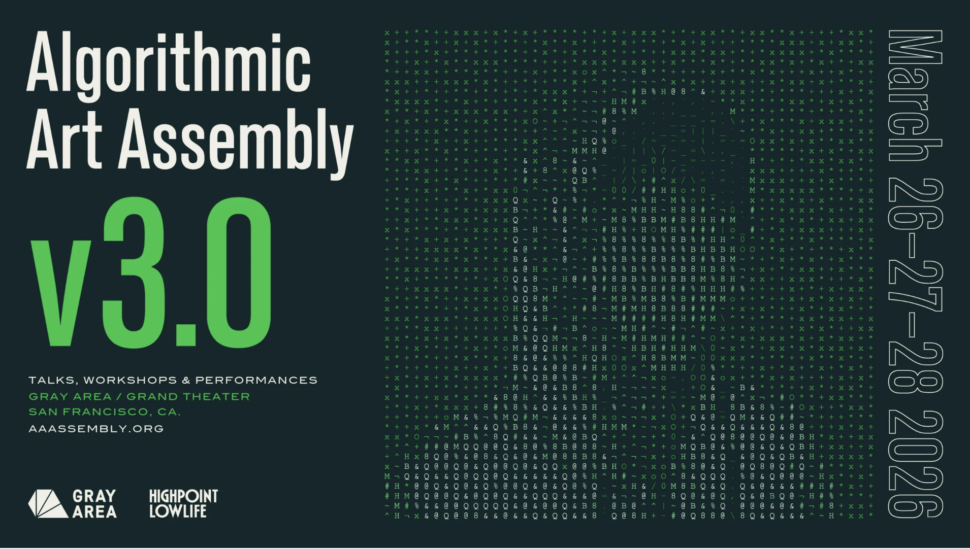 Algorithmic Art Assembly returns to Gray Area for a third edition of the hybrid conference and music festival, March 26 – 28, 2026.