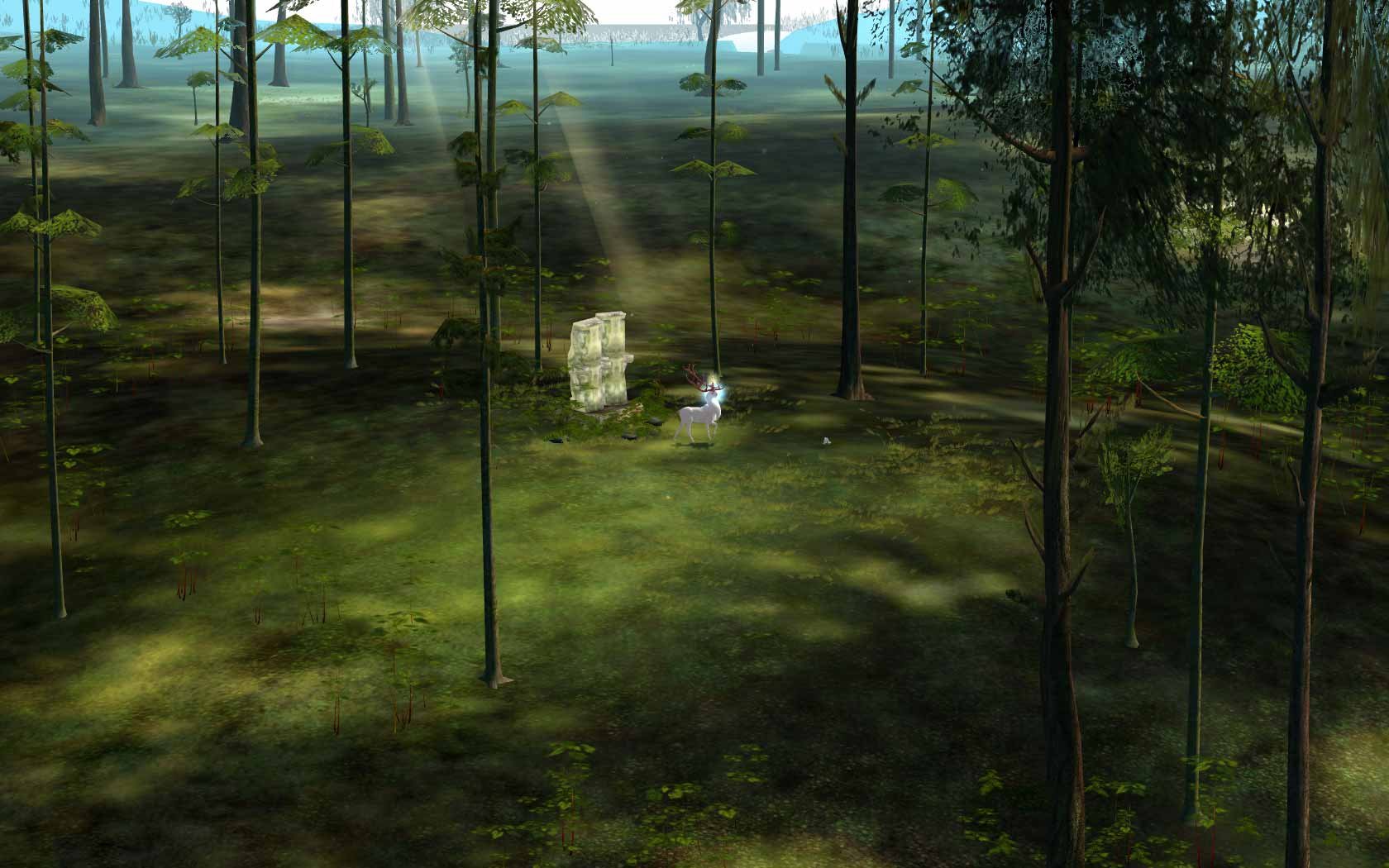 The Endless Forest is a multiplayer online game and social screensaver, a virtual place where visitors can play with their friends. Players meet each other in an infinitely generated forest on the internet; an idyllic, peaceful environment where players can only communicate with one another through sounds and body language. You are a deer. So are the other players. Serendipitous events define this pleasant world without goals or competition