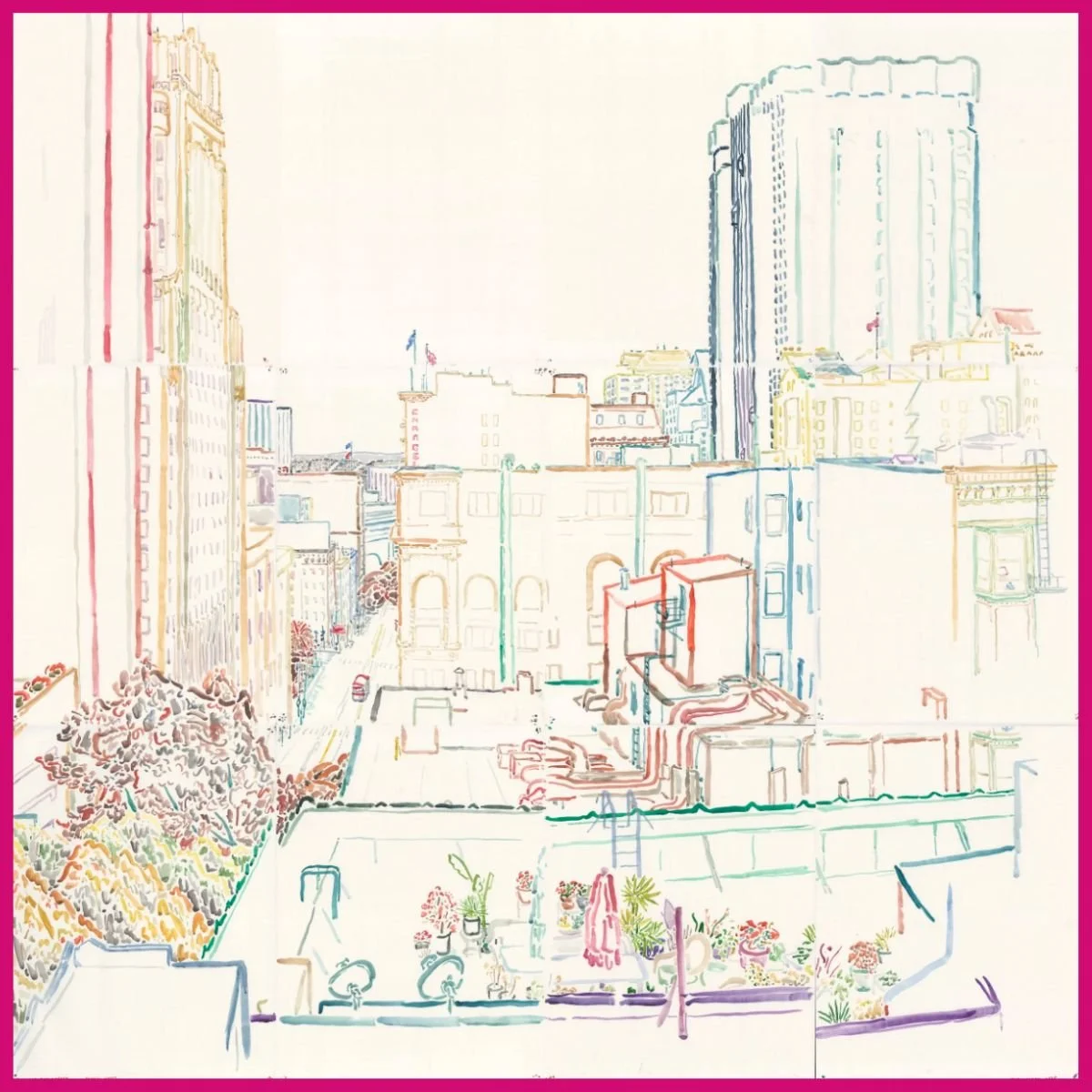 "Arrivals, Again" is an exhibition of new drawings and paintings by David Wilson made over a season of street walks and rooftop observations in Downtown San Francisco. Out of this period of neighborhood attunement, Wilson also created a map to encourage self-guided walking explorations, steering participants towards a constellation of sites where hidden envelopes hold prints of his drawings. Maps are available at Pallas, as well as the following partners: Dark Entries Records, ICA SF, Rebecca Camacho Presents, William Stout Books, Jessica Silverman Gallery, Glass Rice Gallery, Cup of Joy coffee shop, 509 Leavenworth Shop, Tenderloin Museum, Tenderloin People's Garden, and Hospitality House's Community Arts Program.