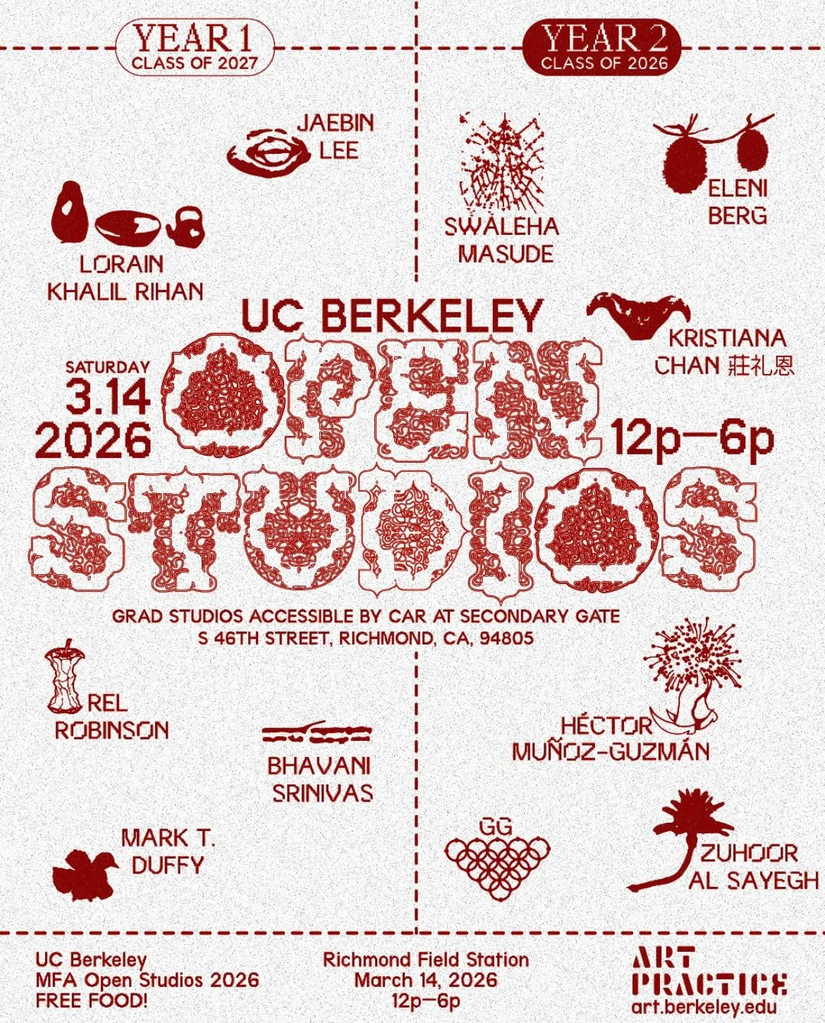 UC Berkeley Department of Art Practice presents MFA Open Studios featuring the class of 2026 and 2027. See what our grads are working on, meet the artists, and enjoy snacks and drinks at our scenic San Francisco Bay-side studios at the Richmond Field Station.