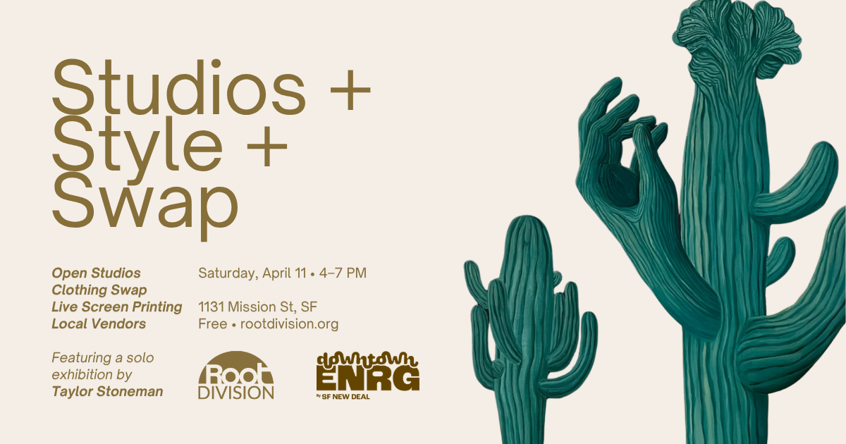 Root Division presents Studios, Style, Swap, a sustainable fashion-themed event on Saturday, April 11, from 4–7 PM.