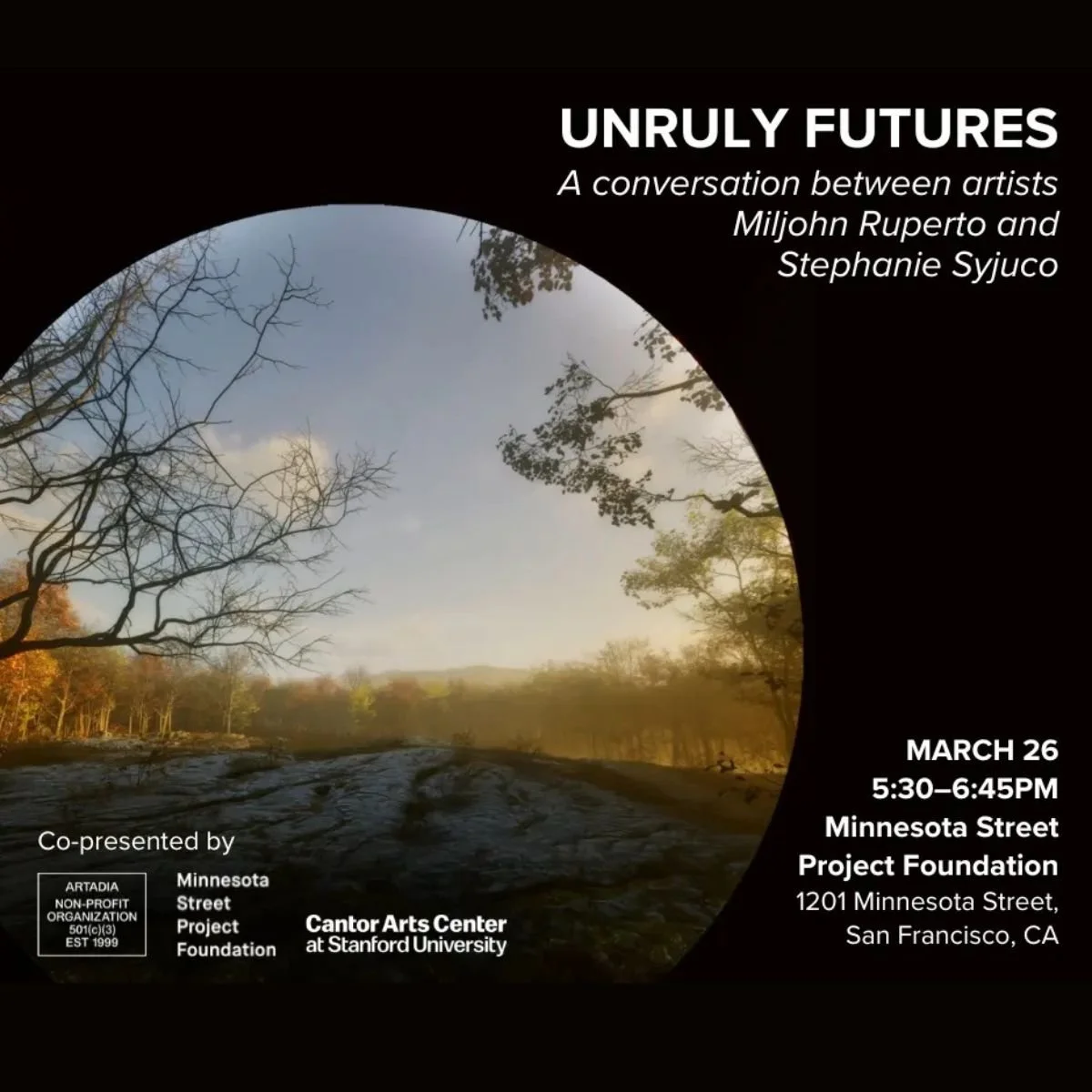 Join Artadia, the Cantor Arts Center, and Minnesota Street Project Foundation for Unruly Futures: a conversation between artists Miljohn Ruperto and Stephanie Syjuco, moderated by Maggie Dethloff, Assistant Curator of Photography and New Media, Cantor Arts Center, followed by an audience Q&A.